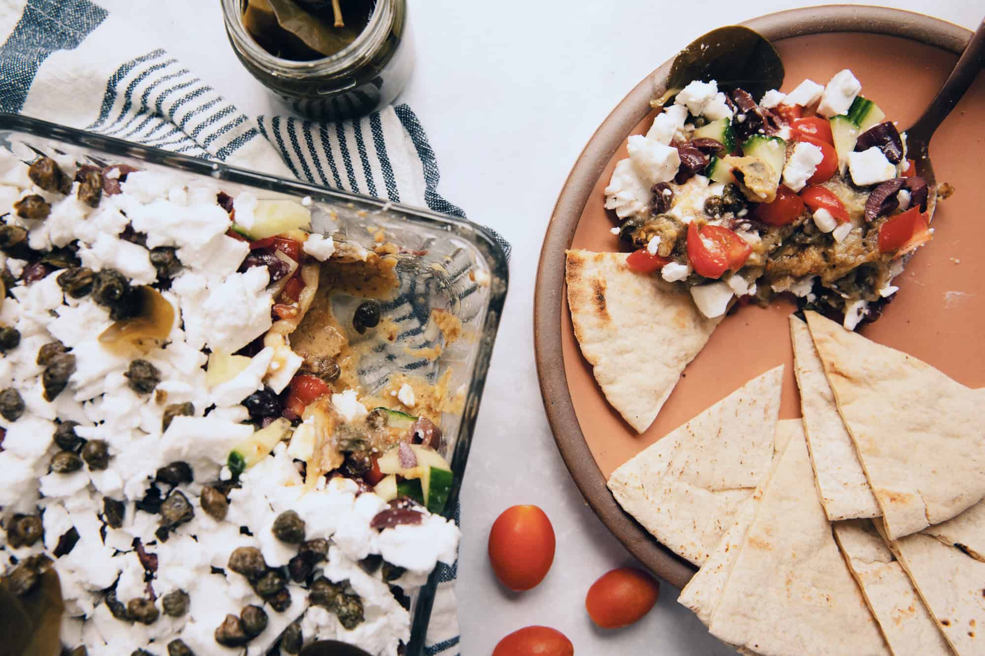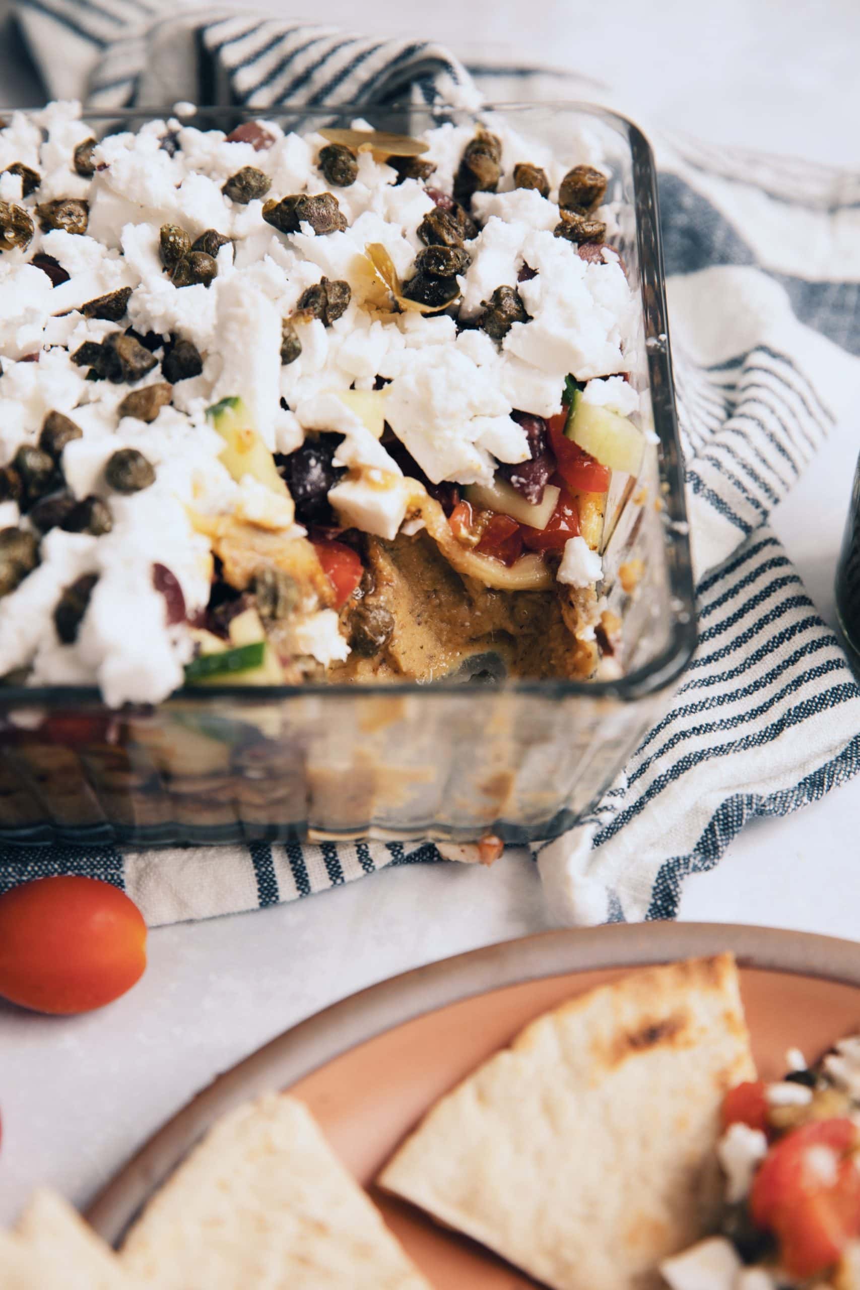That makes seven ingredients. Maybe not seven perfectly defined layers, but you get the idea. The result is a Mediterranean vegan dip that’s bright, fresh, salty, and incredibly satisfying.