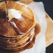 Use a ¼ cup for each pancake. Lightly butter the pan with some vegan butter. I like using a paper towel to spread it evenly around the pan. Scoop batter into the center of the pan. Once it starts to bubble all around and the edges of the pancake are slightly cooked through, that's when you flip it. It's approximately 2 minutes each side. Be sure to adjust your burner temperature as you go as the pan will get really hot half way through.