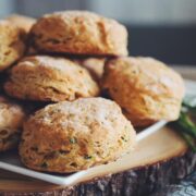 You can also add in a vegan cheese product, like chunks or shreds, for extra flavour. Fold this into the dry ingredients at the same time as you add the liquid ingredients.